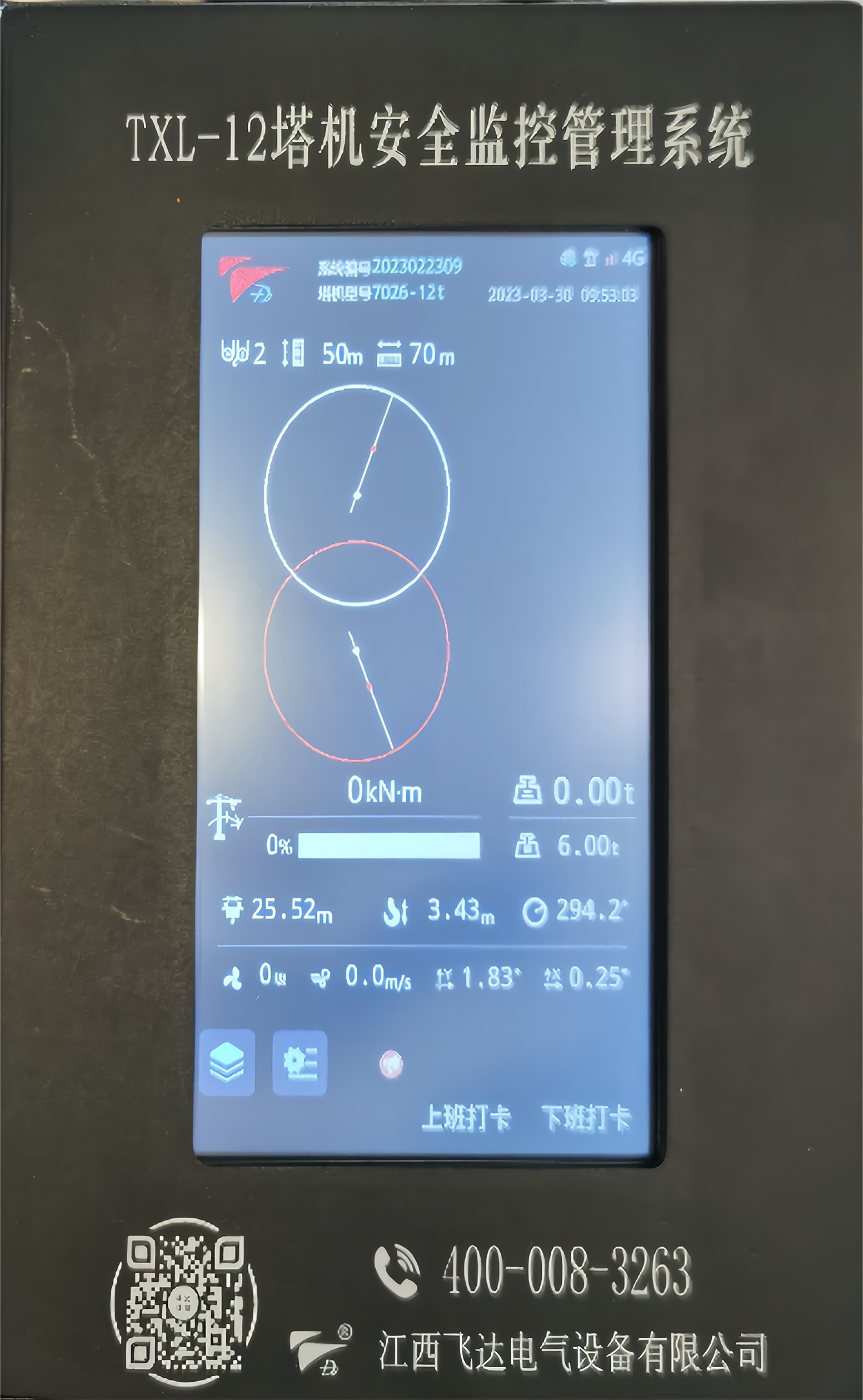 3. The driver can receive the collision alarm by installing a display instrument in the cab, and check the relative position of the big arm and the car of the adjacent tower crane in real time.